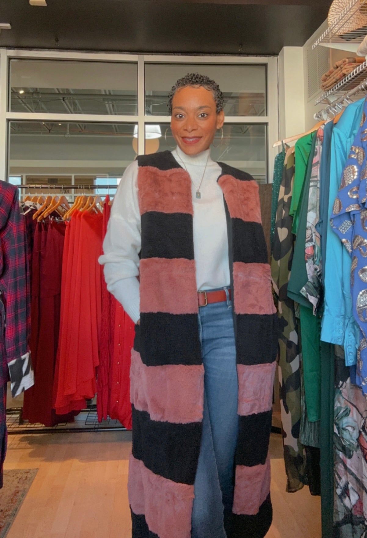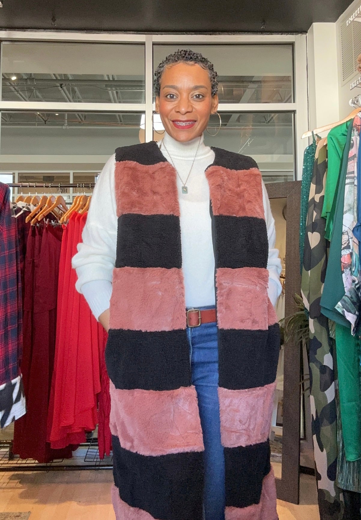 Feeling the Chill Black/Mauve Stripped Vest