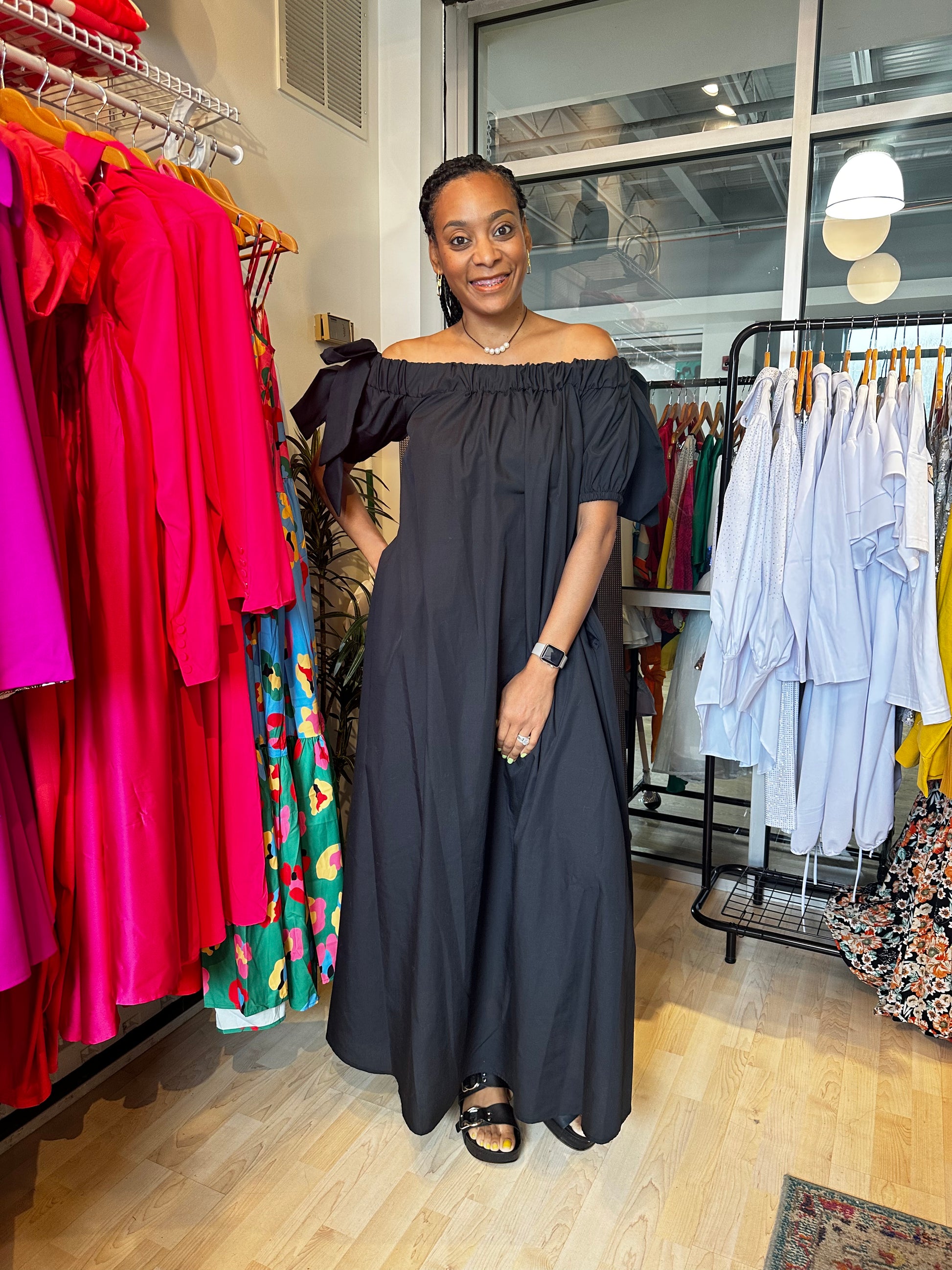 This maxi has Everything we Fabulous ladies are looking for, with a chic off the shoulder bow and a back key hole style. And most importantly we love a good pocket!