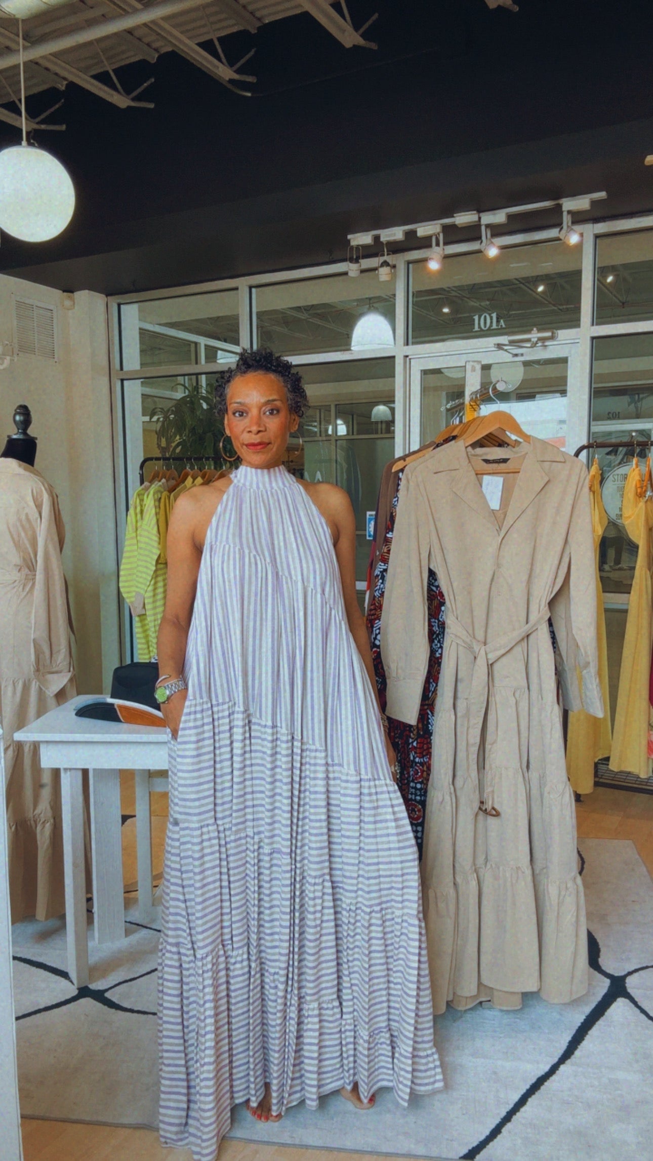 The combination of pastel colors and linen fabric, in a maxi dress....and it has pockets! An ensemble that is both stylish and comfortable with a touch of gracefulness. This flowy maxi doesn't sacrifice on style and creates an effortless, chic look that ready for a casual day out or a special event. Pockets100% Linen Model is wearing a size medium